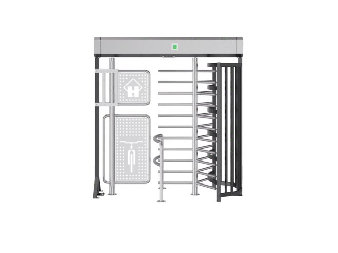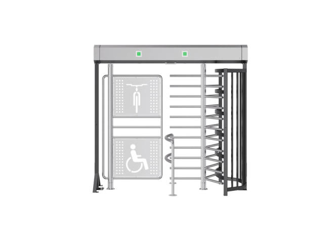 Turnstile used for pedestrians with bicycle or disabled people in wheelchair.